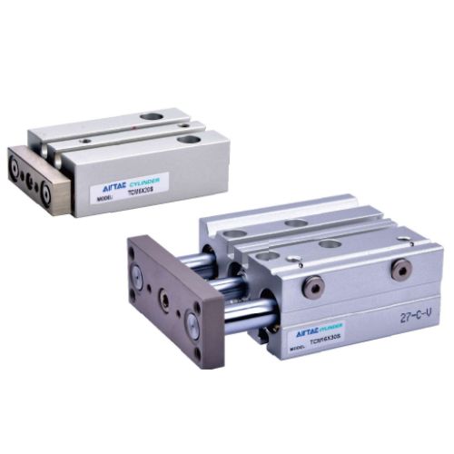 AirTAC Serie TCL/TCM:Cilindro guiado JIS con guías de rodamiento o bronce para evitar rotación, integrando guía y cilindro en un solo barril compacto, disponible con sensores magnéticos y montaje de alta precisión.
